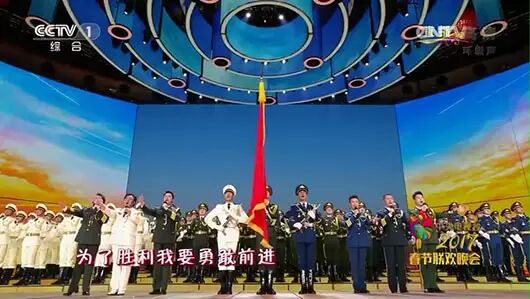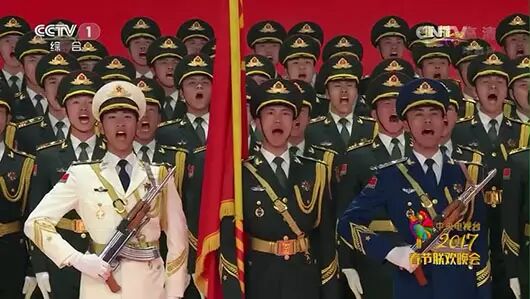 看过鸡年春晚的朋友应该都知道, 外国记者所指的“表演”就是2017年央视春晚歌唱节目之一《当那一天来临》,三军仪仗队本色出演,燃到热血沸腾。
