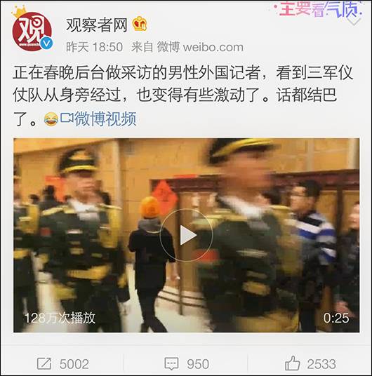 春晚告一段落,但关于春晚的话题还没结束。最近,一段三军仪仗队在央视春晚后台的视频火了起来。