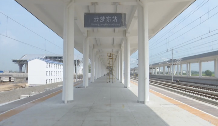 汉十高铁是武(汉)西(安)高铁的重要组成部分,自汉孝城际铁路孝感东站引出,经随州、襄阳至十堰,线路全长399公里。高铁站房于2018年4月开工,目前主体结构工程已完工,转入内部装修和标识标牌安装阶段。7月15日,汉十高铁云梦东站首次试车成功,联调联试列车顺利从汉口站驶达云梦东站。