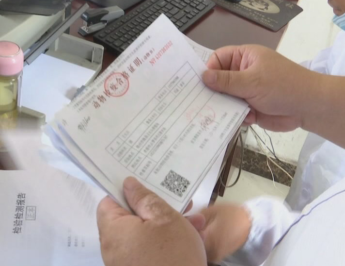【湖北明达食品有限公司行政经理 盛丽】猪的头部检验和内脏检验、寄生虫检验等一些的检验,这些检验合格以后,动物卫生监督所才会给我们出具产品的合格证明,我们公司出具肉品品质的合格证,猪上面会盖上产品检疫合格的章,我们是肉品品质合格章,两证两章合格以后,我们这样才能出厂。