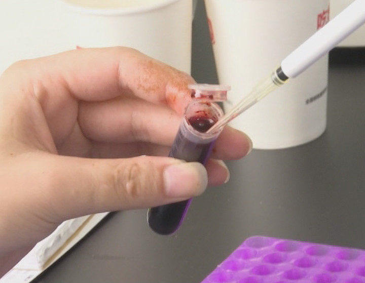 【湖北高金食品有限公司化验员 何小凤】现在正在进行的非洲猪瘟检测,我们刚刚做的就是猪血的离心,下面做的就是用PCR试剂盒检测,咱们现在这个是快速的,连着上机一共一个小时就能出来结果的。