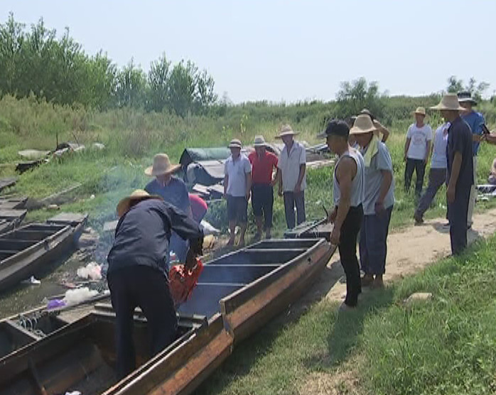 【云梦县下辛店镇元通村渔民 周四华】元通渔业队在这里现场进行拆船,禁渔补贴资金十月份以前发放到位,我们支持工作。