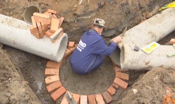 3月31日,记者在吴铺镇七屋村看到,工人们正在做沉井、铺涵管、回填土方,一片繁忙景象。
