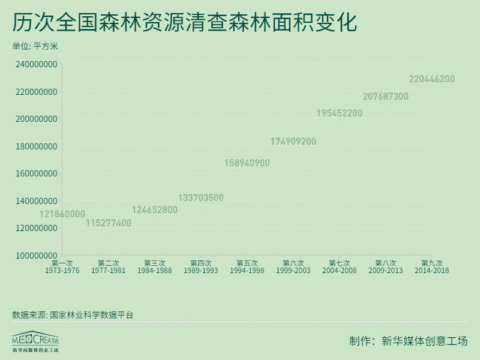 历次全国森林资源清查中森林覆盖率变化及森林面积变化